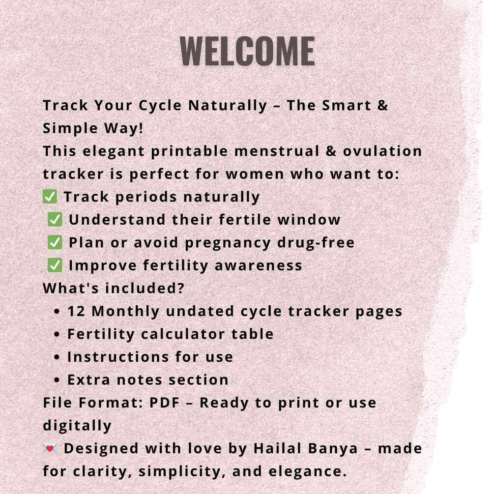 🌸 Natural Fertility & Period Tracker – Printable PDF